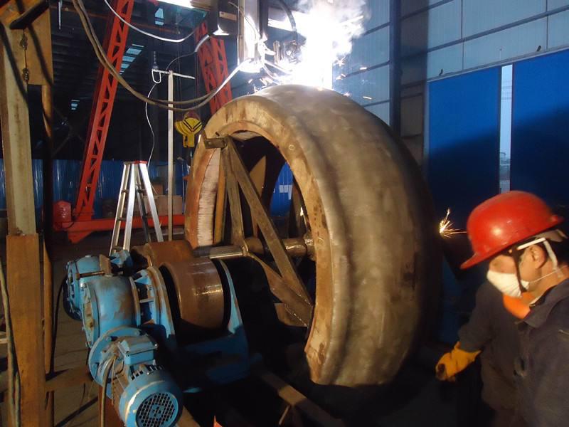 自保護(hù)電弧堆焊是這樣得名的,管狀焊絲的管中還裝有造氣劑等焊劑, 堆焊時(shí)不需要外加氣體保護(hù),因此,這種焊絲的堆焊稱(chēng)為自保護(hù)電弧堆焊,是熔化極氣體保護(hù)堆焊的一個(gè)變型。自保護(hù)電弧堆焊的工藝性能好,一般情況下不用預(yù)熱即可堆焊。自保護(hù)電弧堆焊多用小直徑的堆焊焊絲(2. 4mm),一般用直流反接;若用直流正接則飛濺加大,堆焊層質(zhì)量下降。熔敷速度受到電流、電壓和堆焊焊絲伸出長(zhǎng)度的影響,電流增大時(shí),熔敷速度加大,但熔深和稀釋率也加大。堆焊時(shí),電壓和送絲速度的調(diào)節(jié)應(yīng)保證能得到飛濺小的穩(wěn)定電弧。若電壓太大,碳和合金元素就會(huì)燒損嚴(yán)重。焊接速度的調(diào)節(jié)既要保證堆焊層厚度,又不能使熔池存在時(shí)間過(guò)長(zhǎng),以免影響保護(hù)效果。